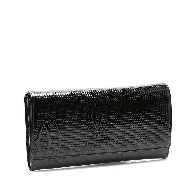 カルティエ ハッピーバースデー ブラック パテントレザー 長財布 レディース CARTIER 【中古】