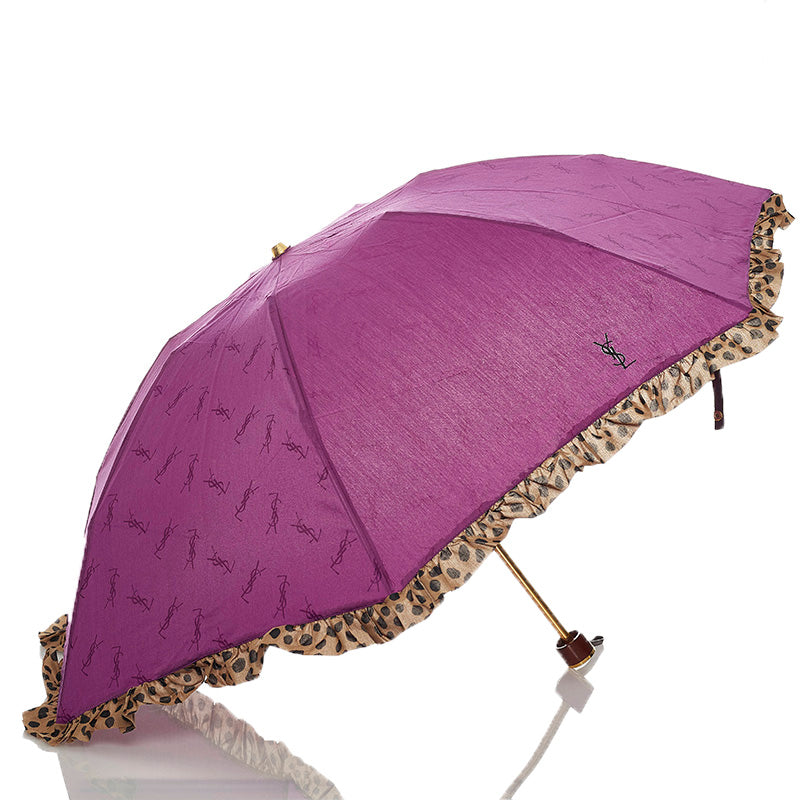 サンローラン フリル 折り畳み 日傘 パープル ナイロン レディース SAINT LAURENT 【中古】