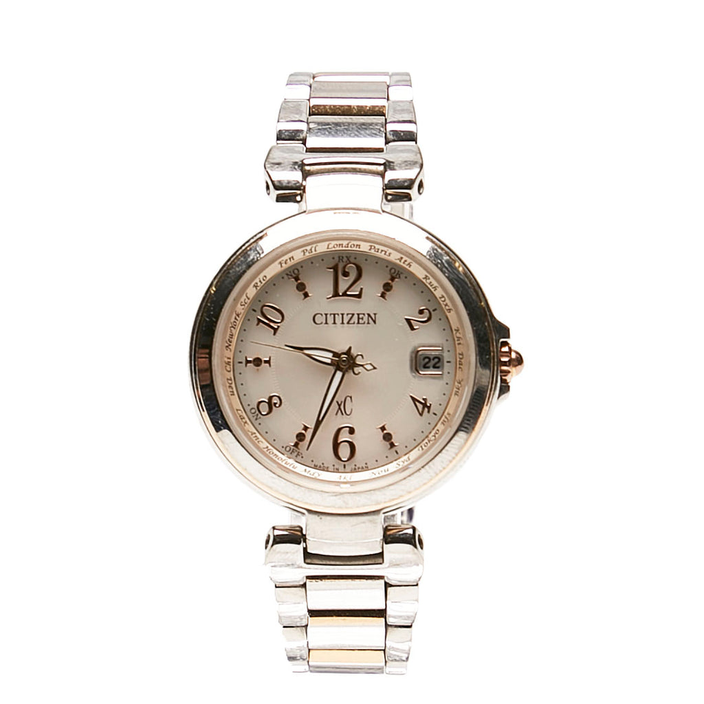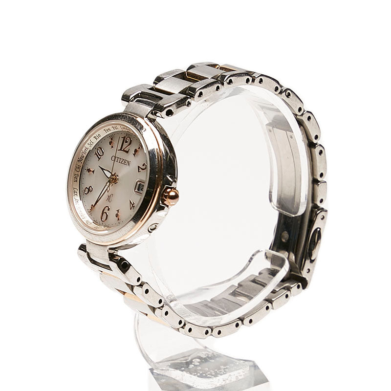 シチズン クロスシー 腕時計 EC1036-53W エコドライブ電波時計 シャンパンゴールド文字盤 ステンレススチール レディース CITIZEN 【中古】