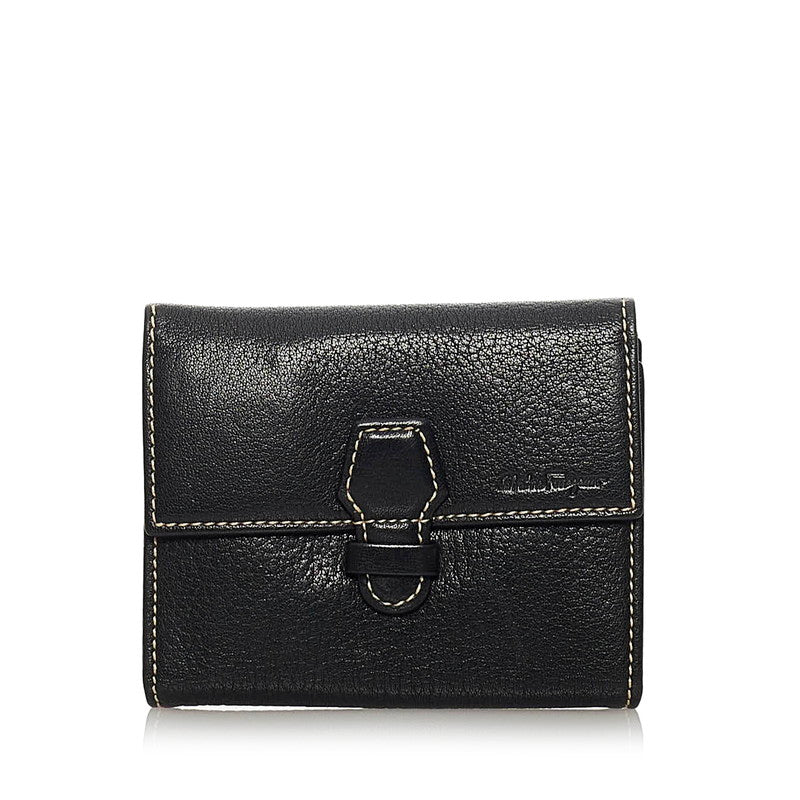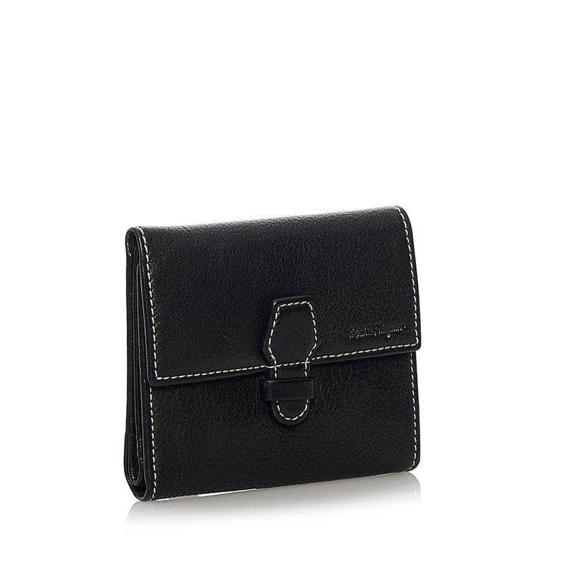 サルヴァトーレフェラガモ 二つ折り財布 KD 66 8599 ブラック レザー レディース Salvatore Ferragamo 【中古】