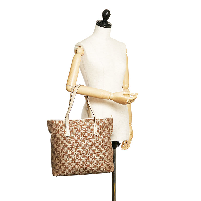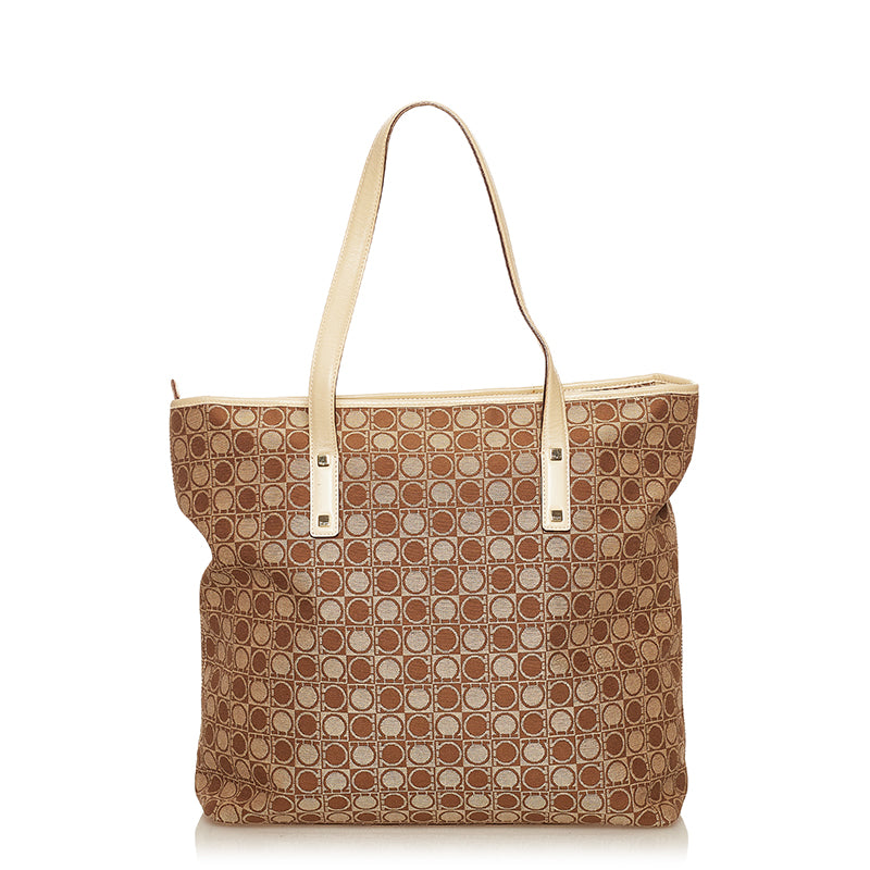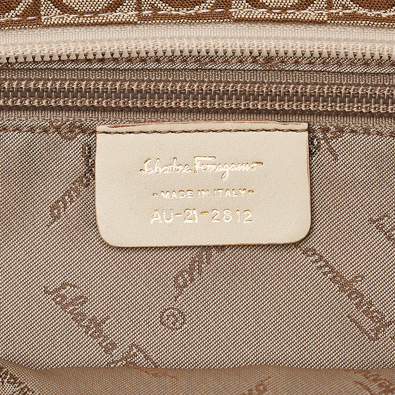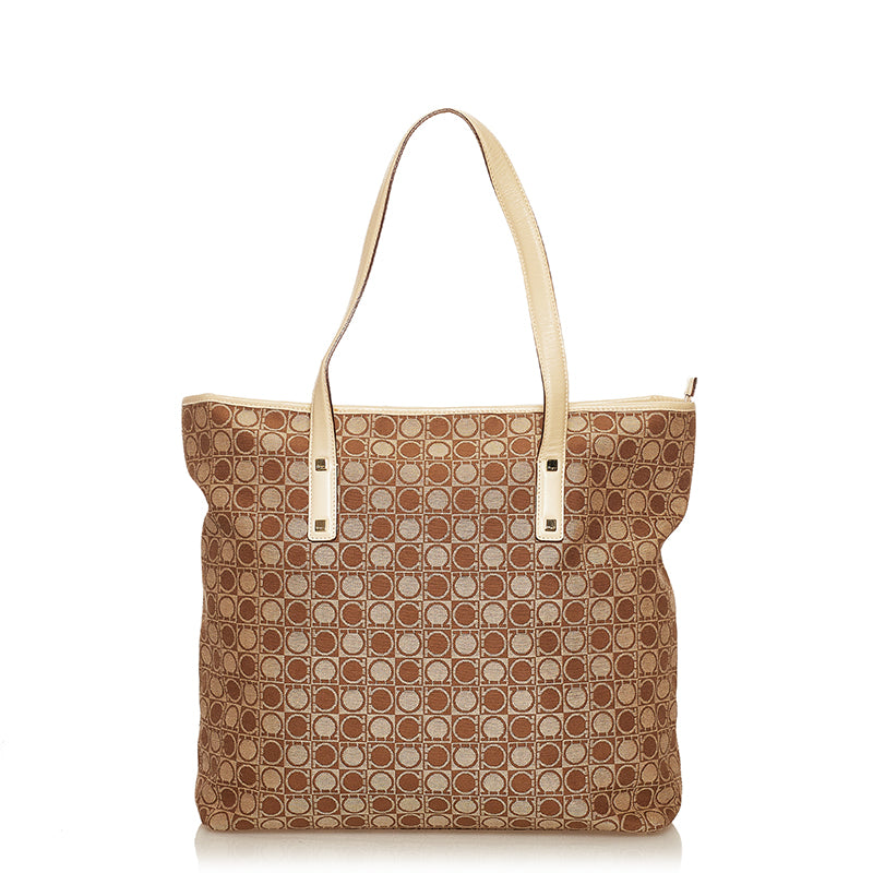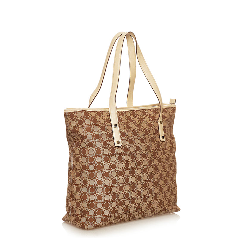 サルヴァトーレフェラガモ ガンチーニ トートバッグ AU 21 2812 ベージュ キャンバス レザー レディース Salvatore Ferragamo 【中古】