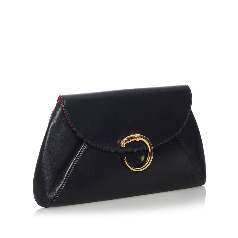 カルティエ パンテール ブラック レザー クラッチバッグ レディース CARTIER 【中古】