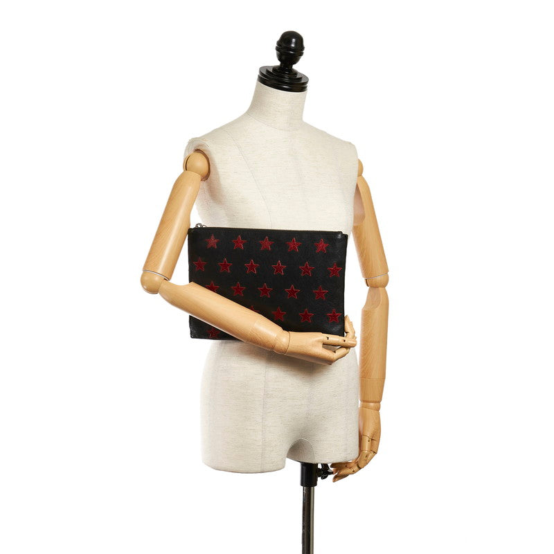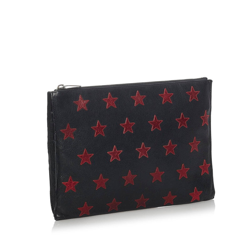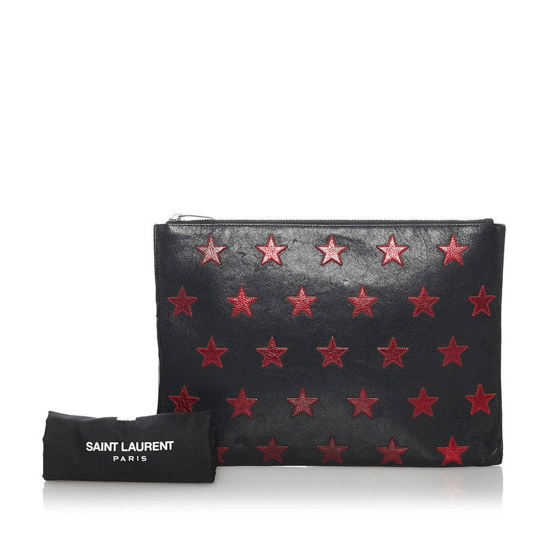 サンローラン スター クラッチバッグ ブラック レッド レザー メンズ SAINT LAURENT 【中古】