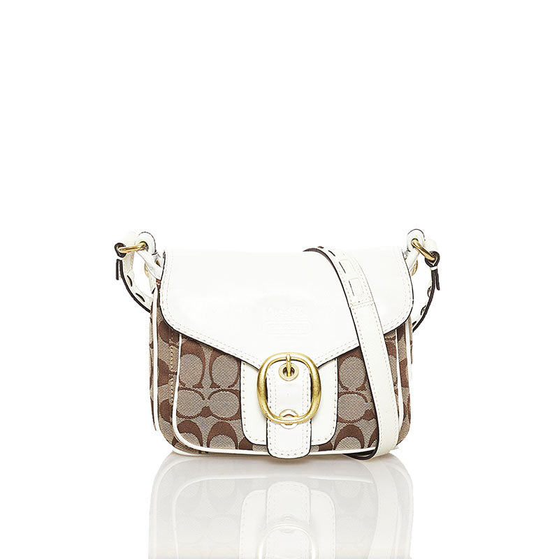 コーチ シグネチャー 斜め掛け ショルダーバッグ 11593 ブラウン ホワイト キャンバス レザー レディース COACH 【中古】