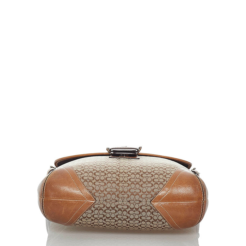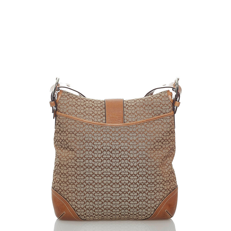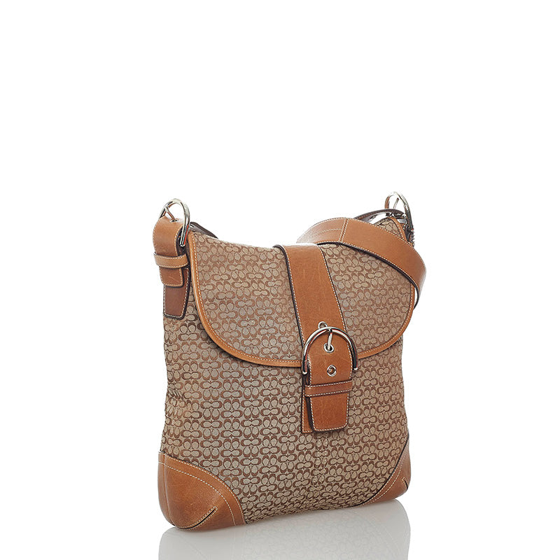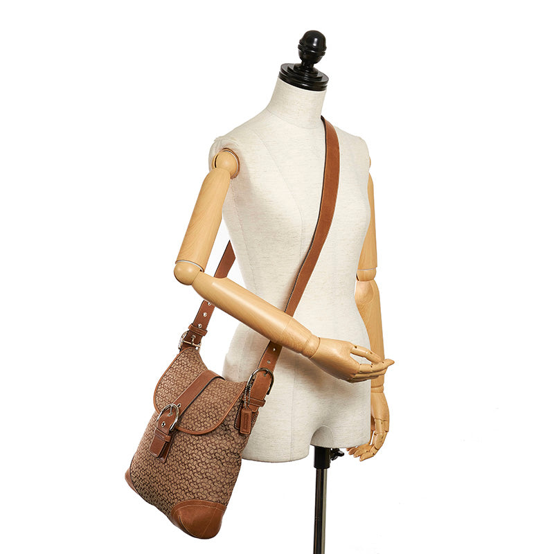 コーチ シグネチャー 斜め掛け ショルダーバッグ ブラウン キャンバス レザー レディース COACH 【中古】