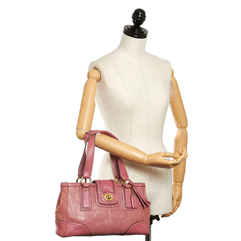 コーチ シグネチャー ハンドバッグ 12289 ピンク レザー レディース COACH 【中古】