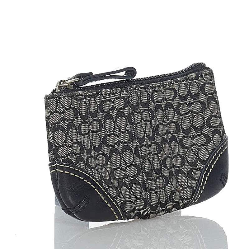 コーチ シグネチャー ブラック キャンバス レザー コインケース レディース COACH 【中古】