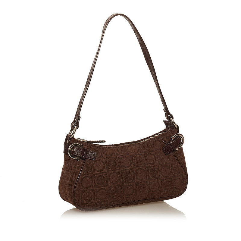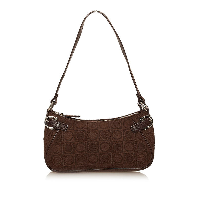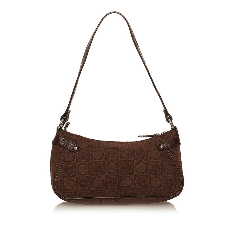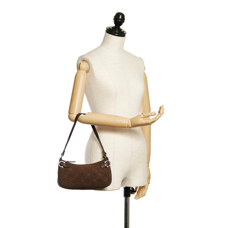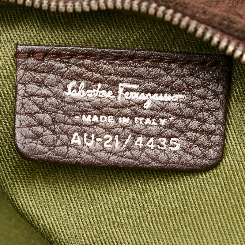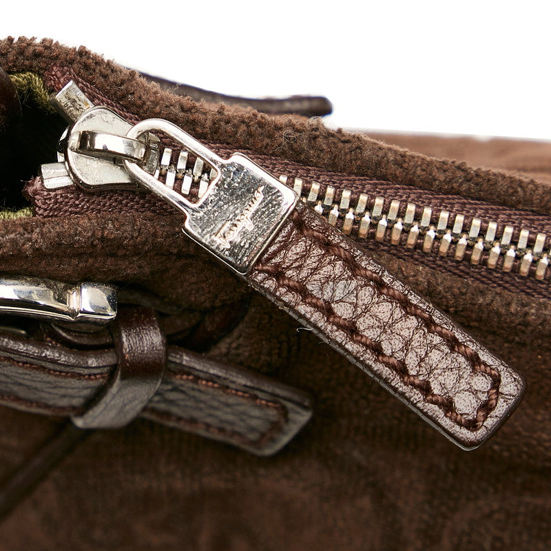 サルヴァトーレフェラガモ ガンチーニ AU-21 4435 ブラウン パイル レザー ポーチ レディース Salvatore Ferragamo 【中古】