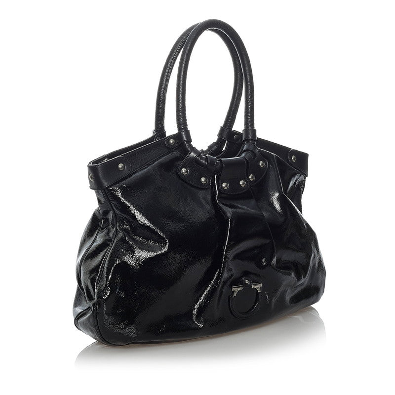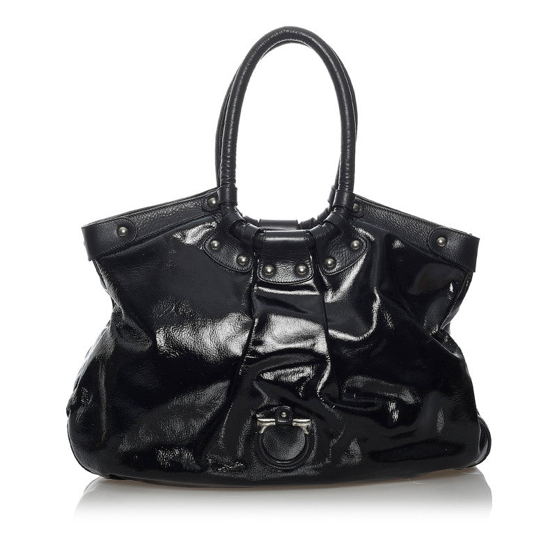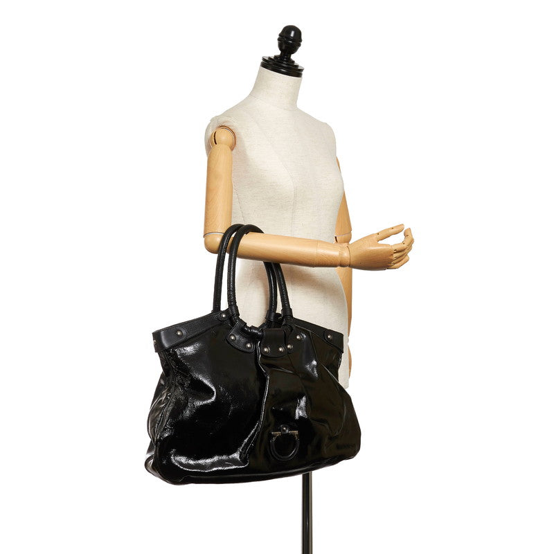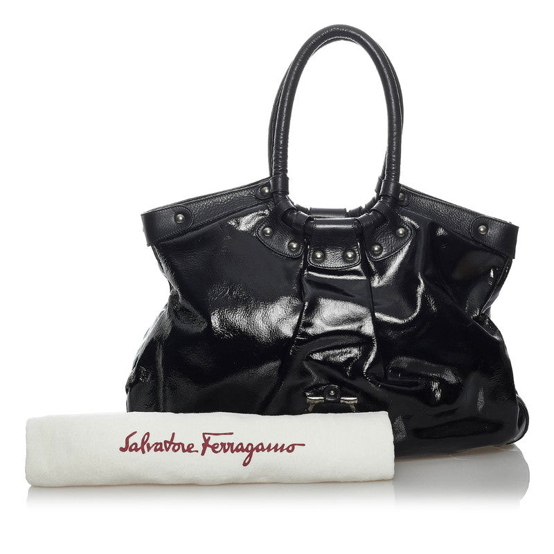 サルヴァトーレフェラガモ ガンチーニ ハンドバッグ EZ-21 7804 ブラック パテントレザー レディース Salvatore Ferragamo 【中古】