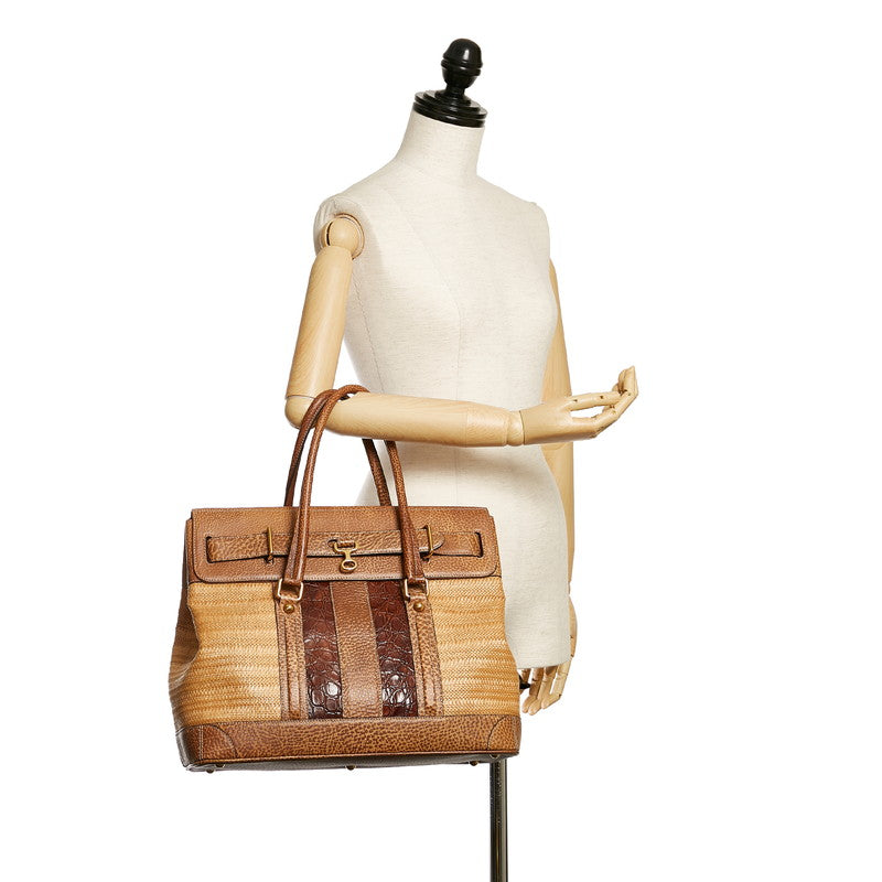 グッチ トートバッグ 223941 ブラウン ベージュ レザー ストロー レディース GUCCI 【中古】