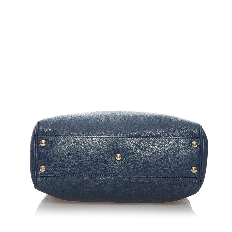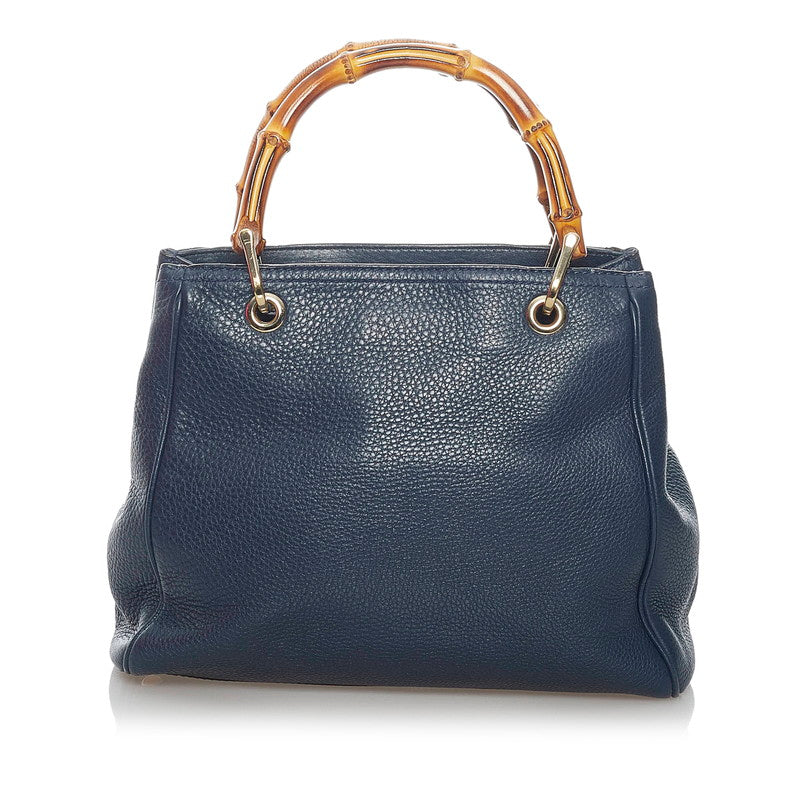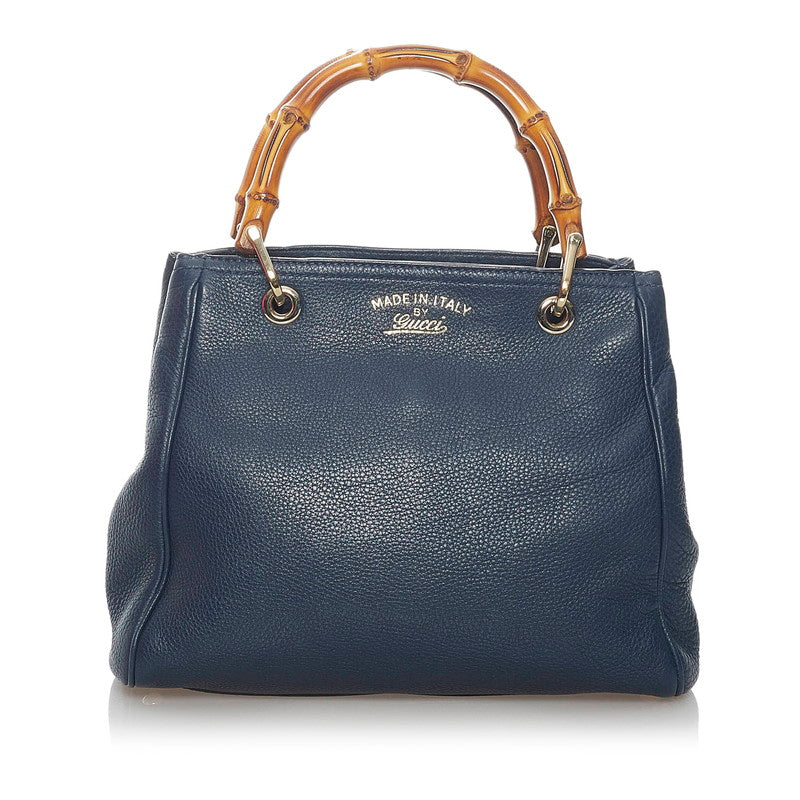 グッチ バンブー 336032 ネイビー レザー ハンドバッグ ショルダーバッグ 2WAY レディース GUCCI 【中古】
