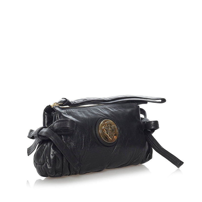 グッチ ヒステリア クレスト ポーチ 203632 ブラック レザー レディース GUCCI 【中古】