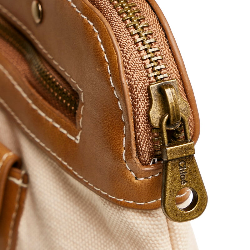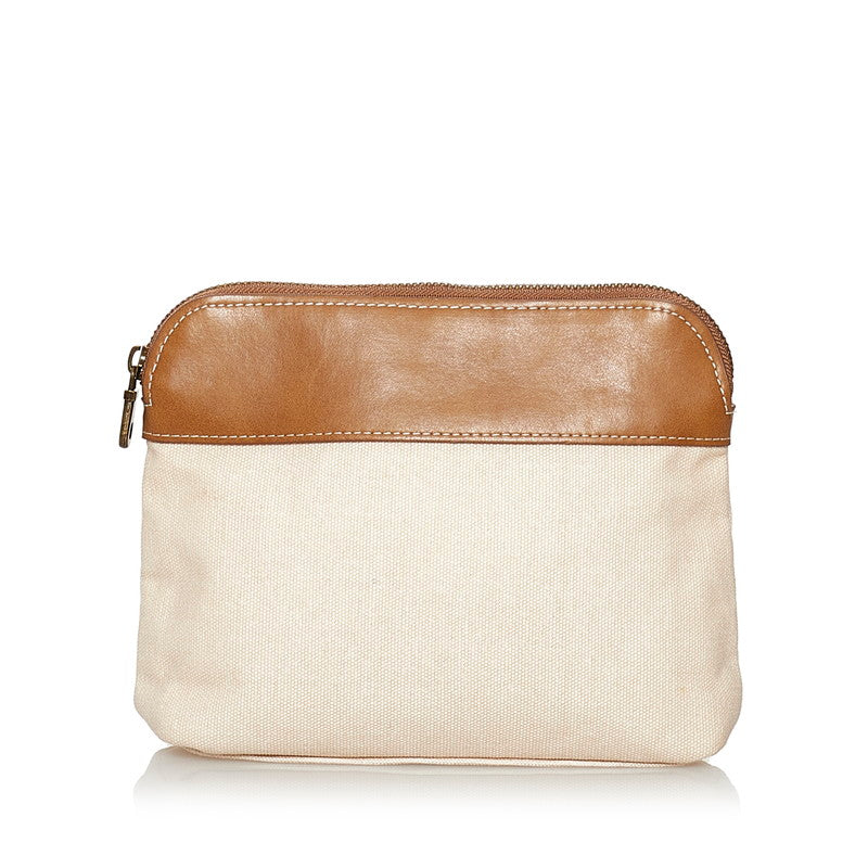 クロエ ポーチ オフホワイト ブラウン キャンバス レザー レディース Chloe 【中古】