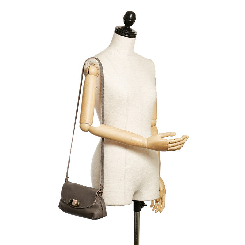 クロエ リリィ リボン グレー ピンク レザー ミニ ハンドバッグ ショルダーバッグ 2WAY レディース Chloe 【中古】