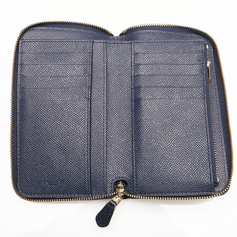コーチ ラウンドファスナー 長財布 ネイビー レザー レディース COACH 【中古】