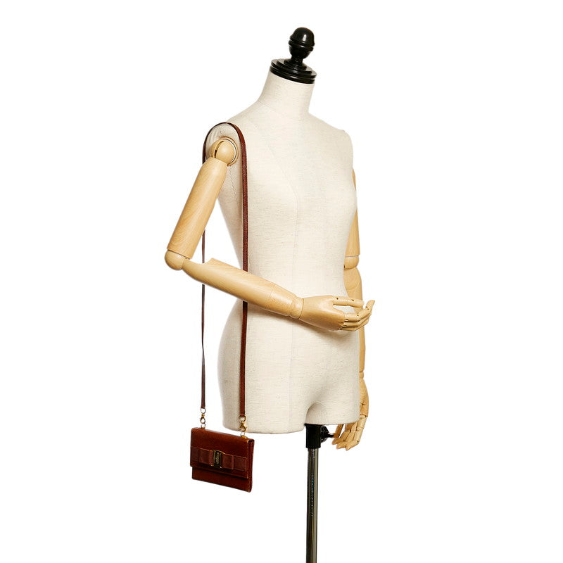 サルヴァトーレフェラガモ ヴァラリボン ショルダーウォレット 22 5619 ブラウン レザー レディース Salvatore Ferragamo 【中古】