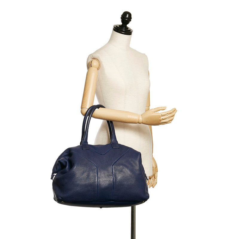 サンローラン Yライン ネイビー レザー トートバッグ レディース SAINT LAURENT 【中古】