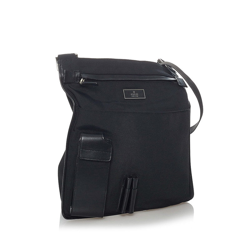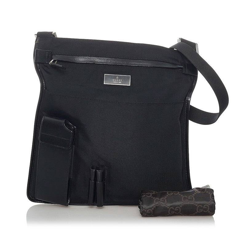 グッチ 019 0335 ブラック キャンバス レザー 斜め掛け ショルダーバッグ メンズ GUCCI 【中古】