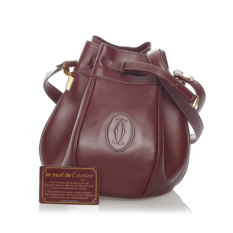 カルティエ マスト ボルドー ポリッシュレザー ショルダーバッグ レディース CARTIER 【中古】