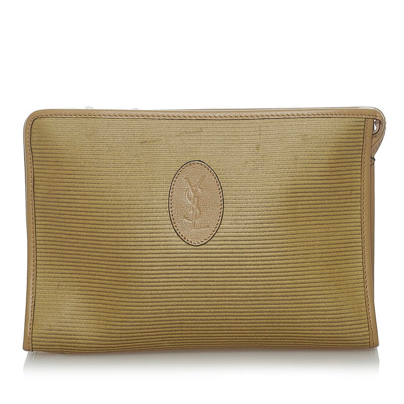 サンローラン オールドロゴ セカンドバッグ ベージュ カーキ PVC レザー メンズ SAINT LAURENT 【中古】