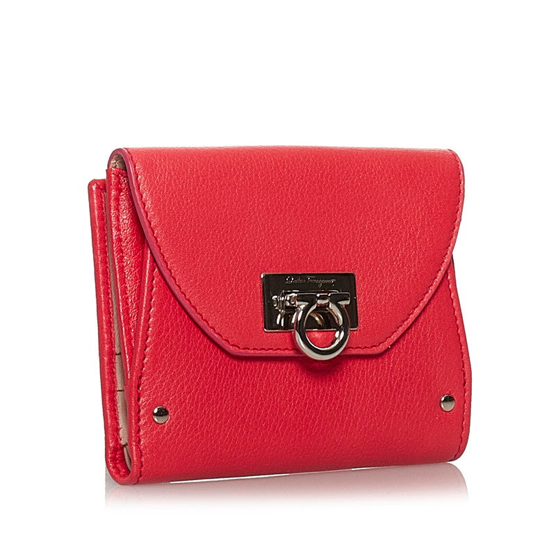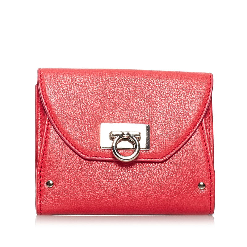 サルヴァトーレフェラガモ ガンチーニ 二つ折り財布 IR-22A596 ピンク レザー レディース Salvatore Ferragamo 【中古】
