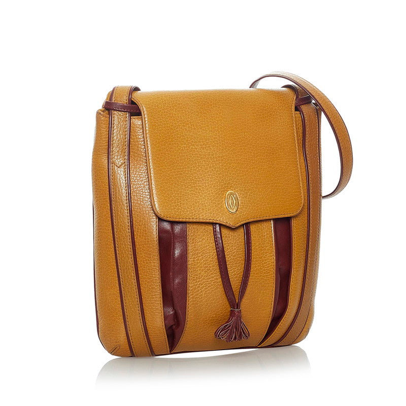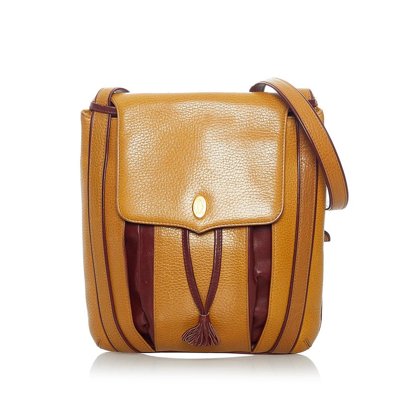 カルティエ マスト 斜め掛け ショルダーバッグ マスタード ボルドー レザー レディース CARTIER 【中古】