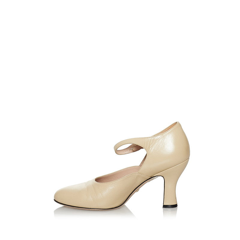 グッチ メリージェーン パンプス 446750 ベージュ レザー レディース GUCCI 【中古】