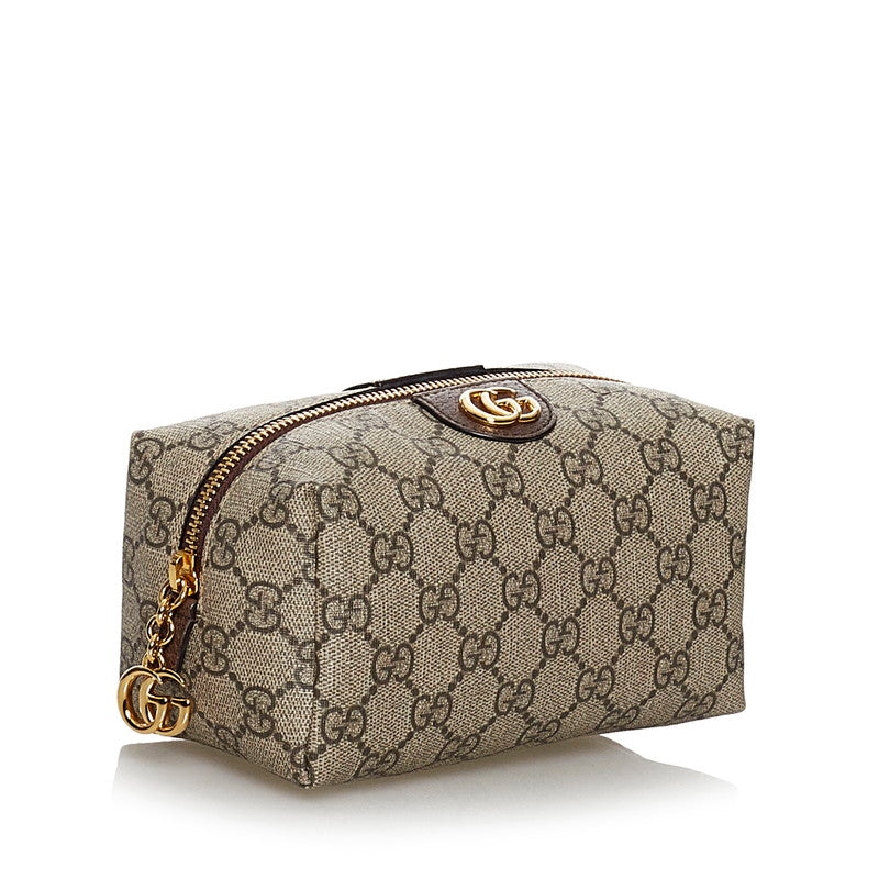 グッチ GGスプリーム コスメティックケース ポーチ 548393 ブラウン PVC レザー レディース GUCCI 【中古】