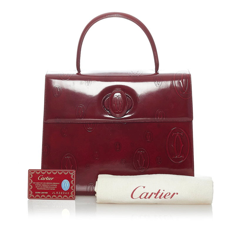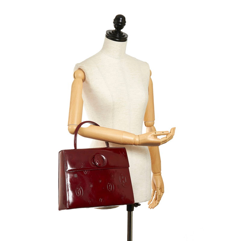 カルティエ マスト ハンドバッグ ボルドー エナメル レディース CARTIER 【中古】