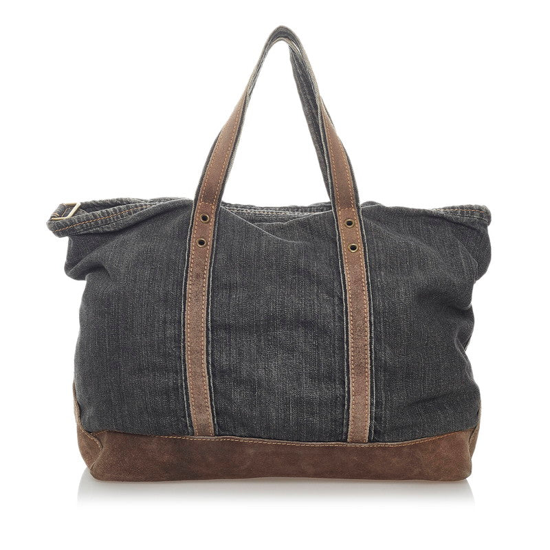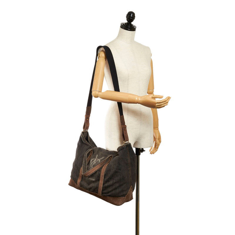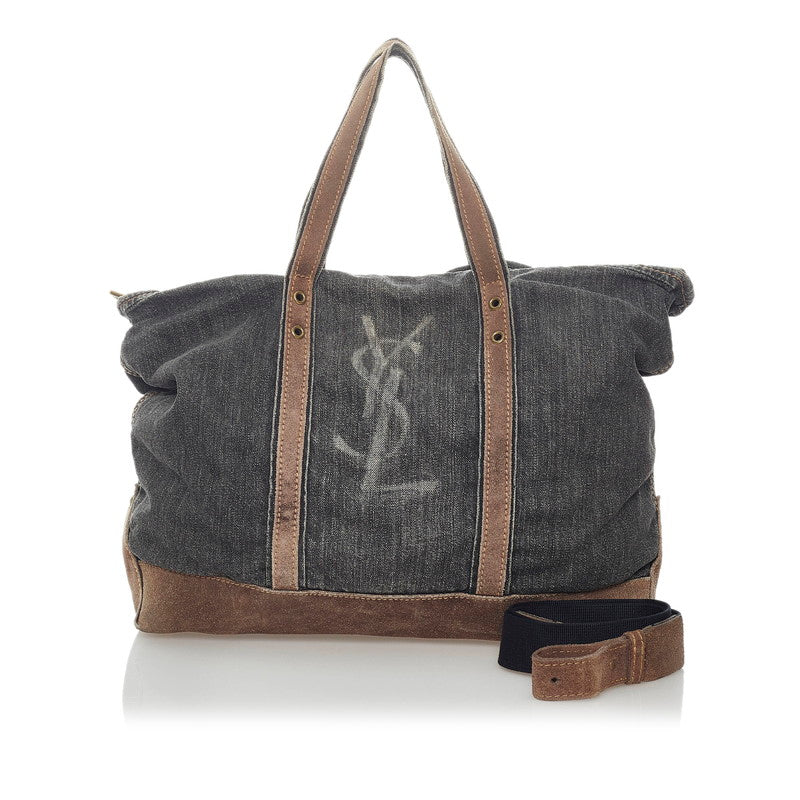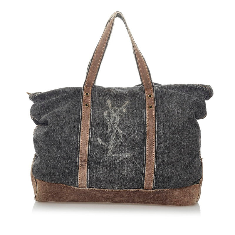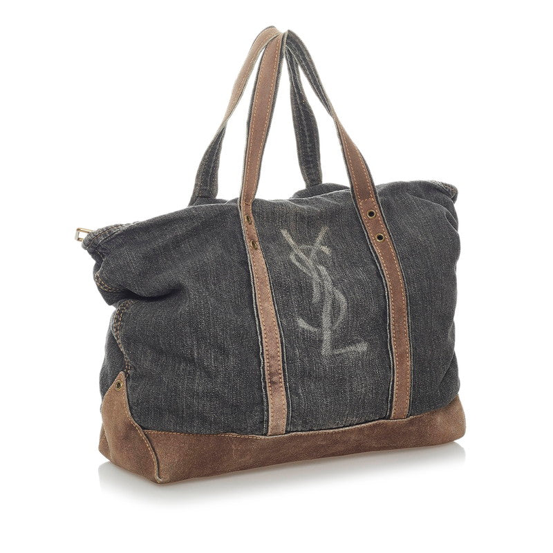 サンローラン リヴゴーシュ ハンドバッグ ショルダーバッグ 2way 141424 ブラック ブラウン デニム スウェード レディース SAINT LAURENT 【中古】