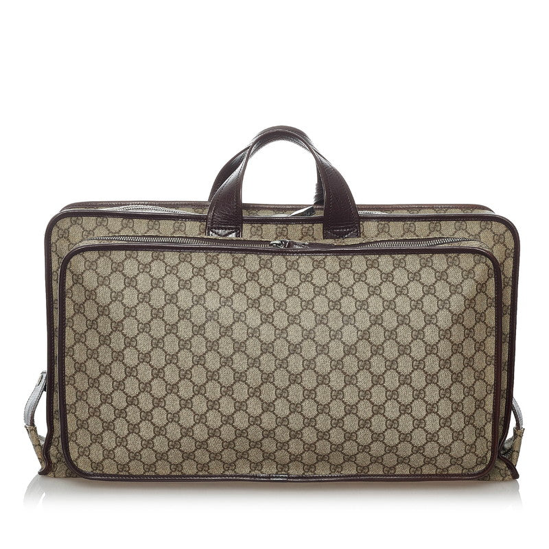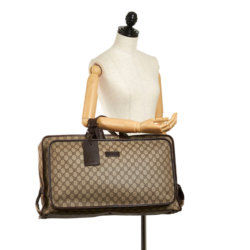 グッチ GGスプリーム ボストンバッグ 114225 ブラウン アイボリー PVC レザー メンズ GUCCI 【中古】