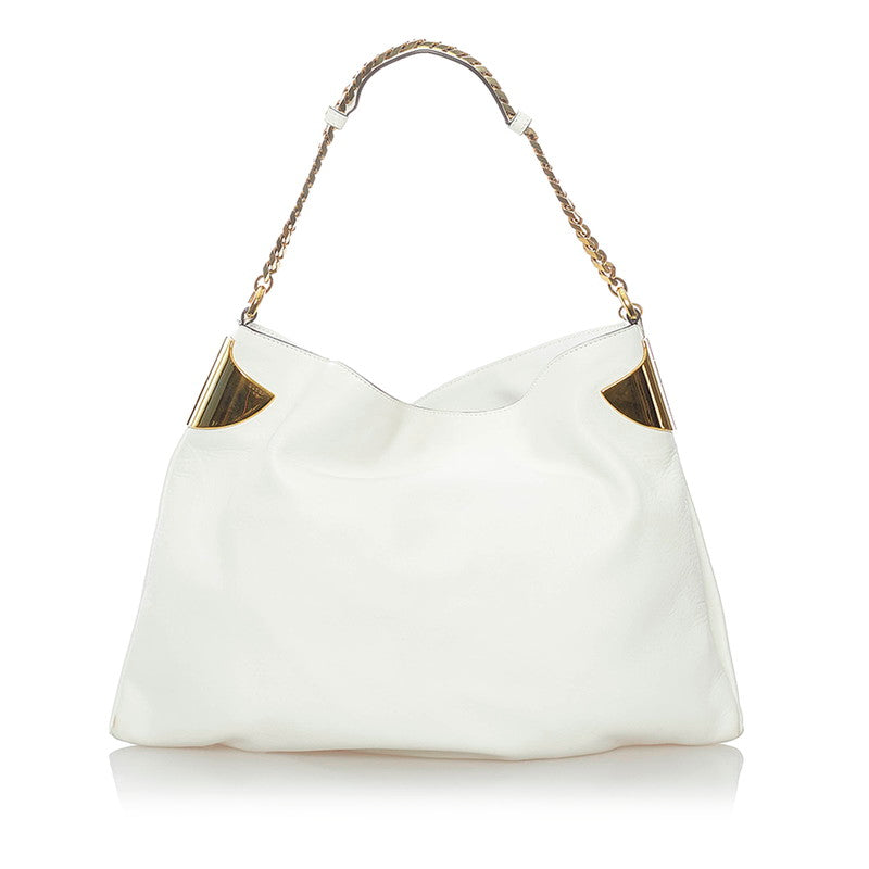 グッチ タッセル チェーン ショルダーバッグ 290682 ホワイト レザー レディース GUCCI 【中古】
