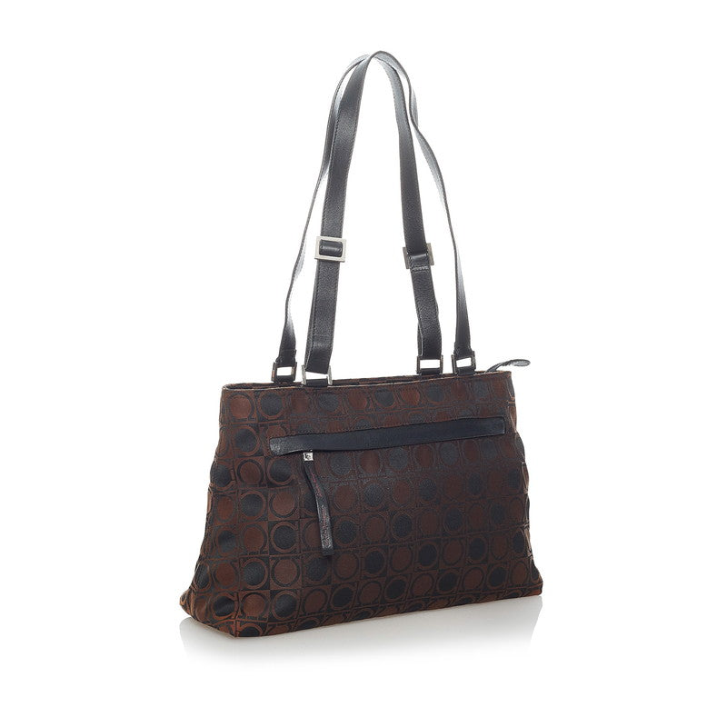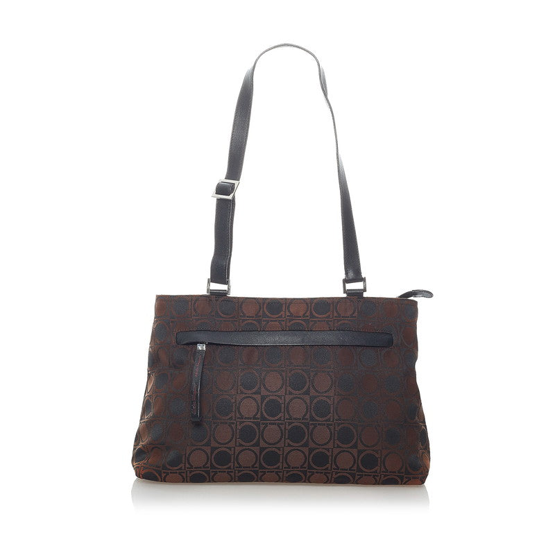 サルヴァトーレフェラガモ ガンチーニ ショルダーバッグ AU-21 0868 ブラウン ナイロン レザー レディース Salvatore Ferragamo 【中古】