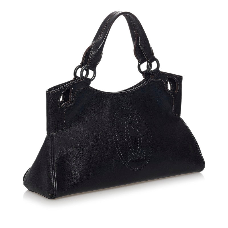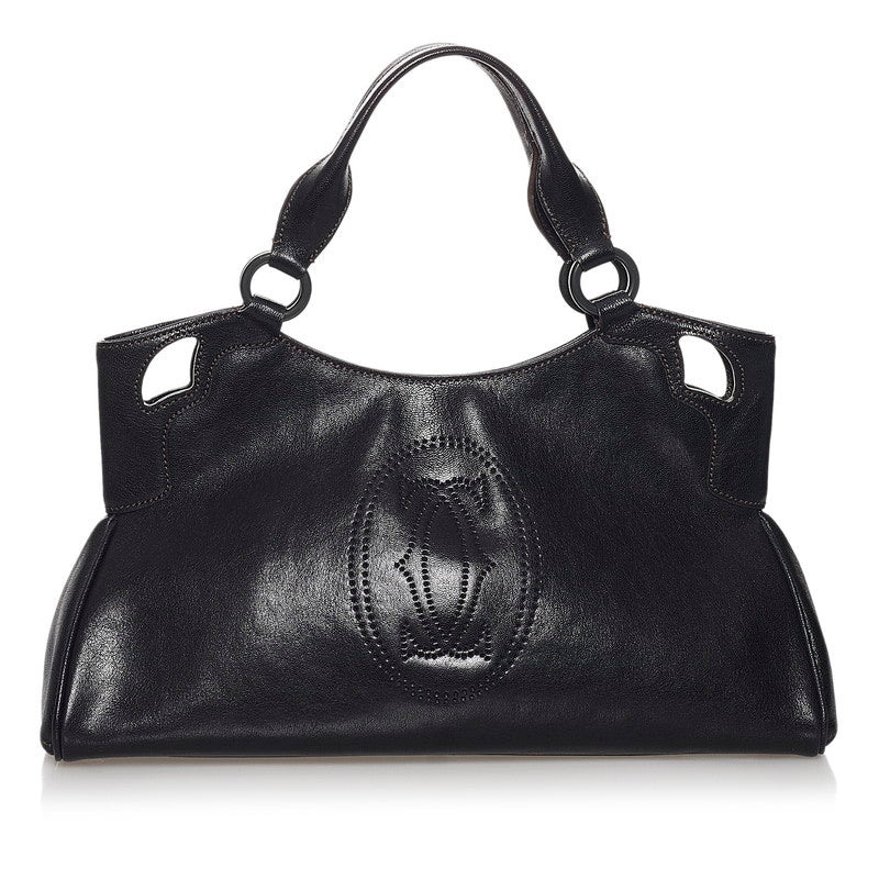 カルティエ マルチェロ ハンドバッグ ブラック レザー レディース CARTIER 【中古】