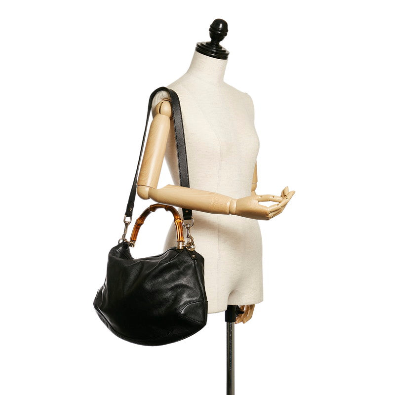 グッチ バンブー ハンドバッグ ショルダーバッグ 2WAY 169961 ブラック レザー レディース GUCCI 【中古】