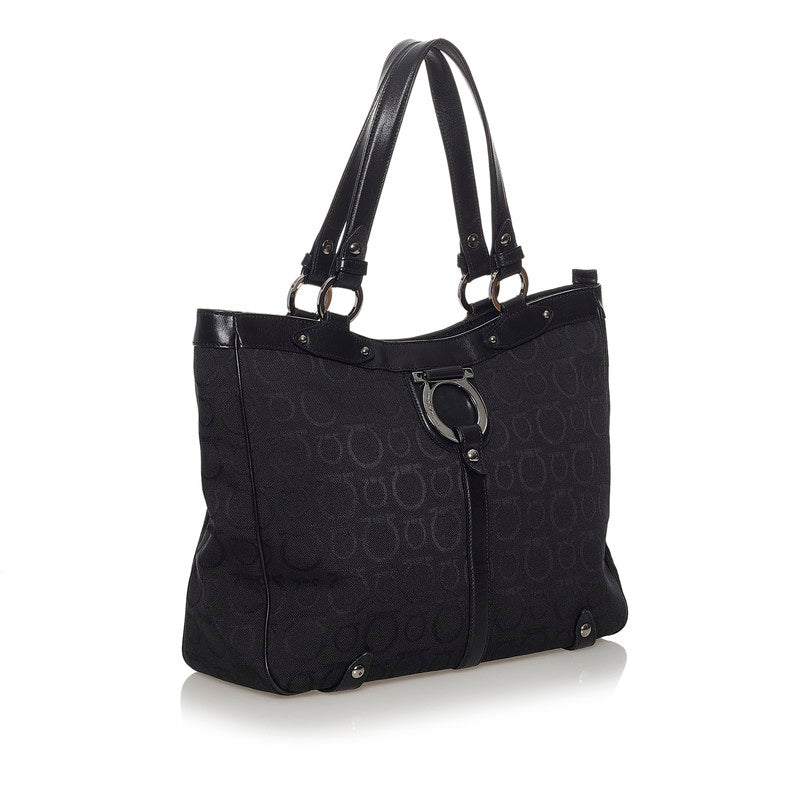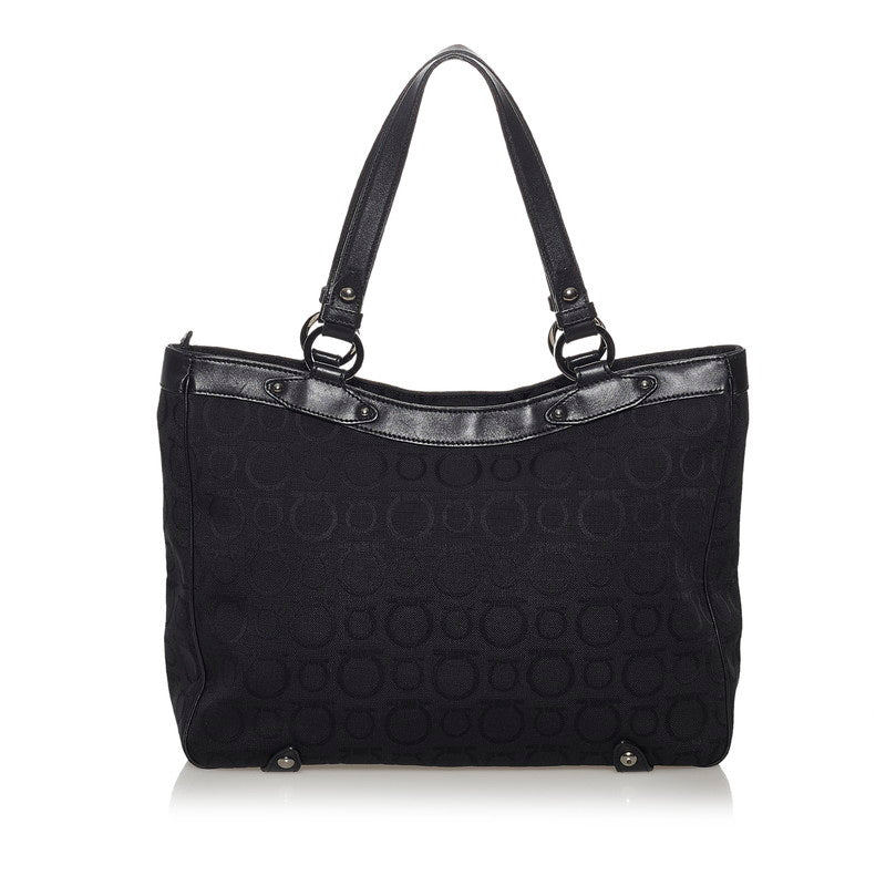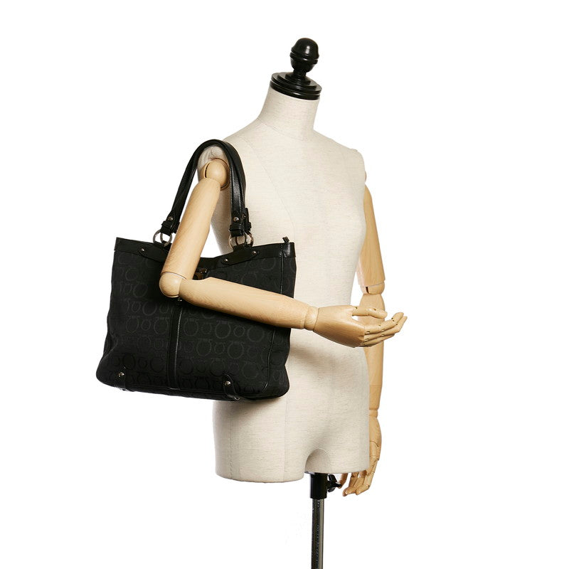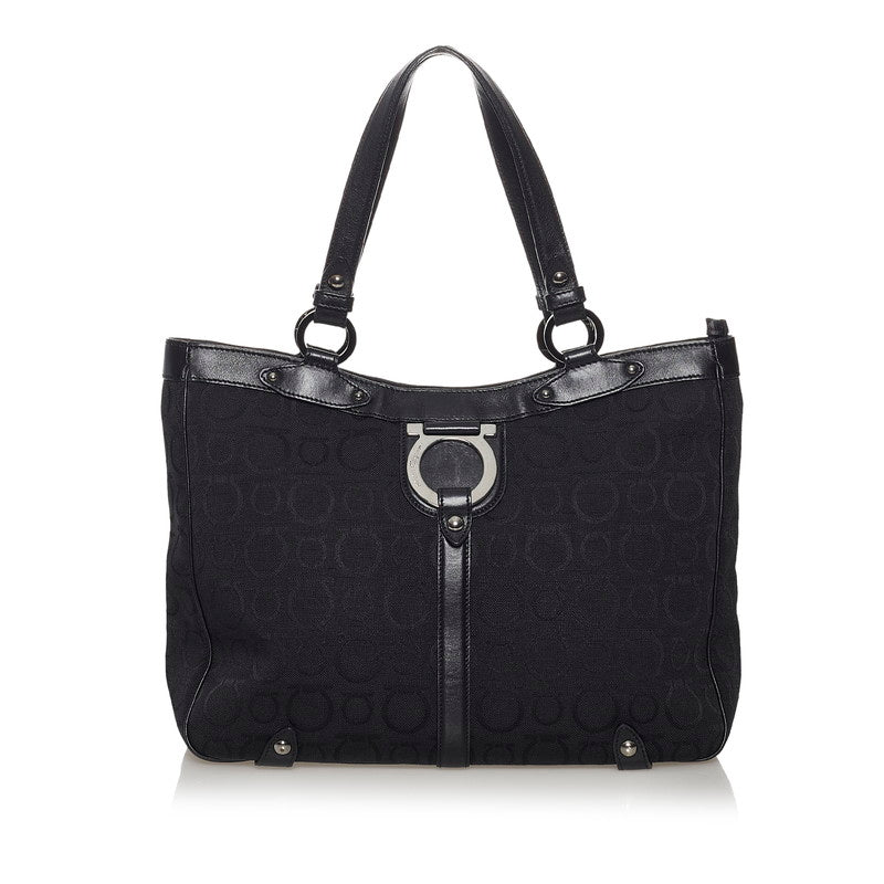 サルヴァトーレフェラガモ ガンチーニ トートバッグ EY-21 6848 ブラック キャンバス レザー レディース Salvatore Ferragamo 【中古】