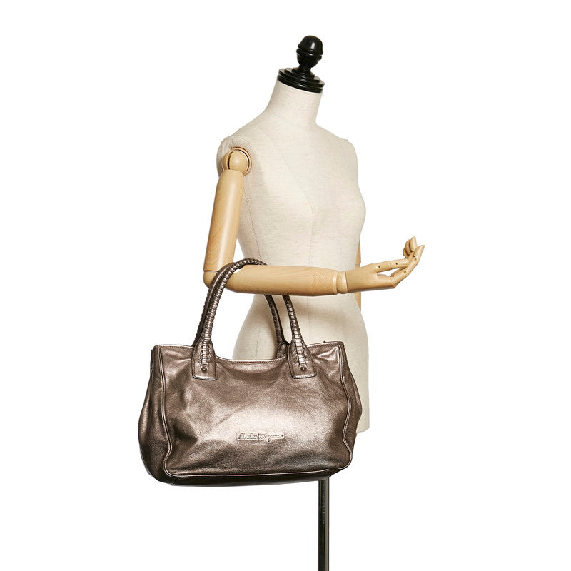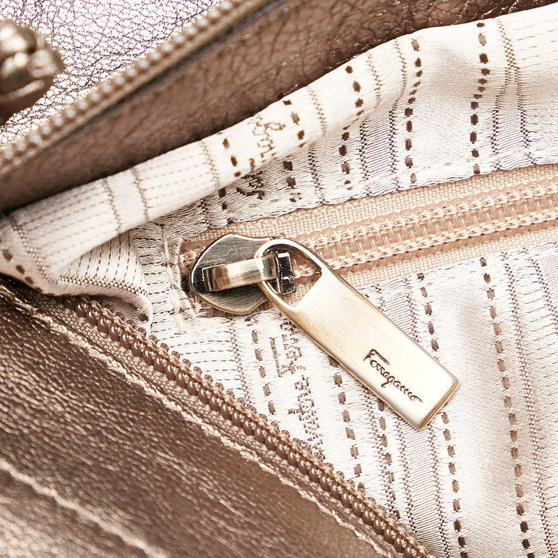 サルヴァトーレフェラガモ トートバッグ ハンドバッグ GG-21 B985 メタリックブラウン レザー レディース Salvatore Ferragamo 【中古】