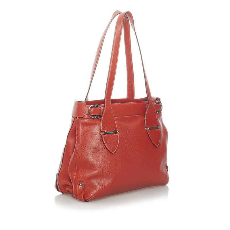 サルヴァトーレフェラガモ ガンチーニ ハンドバッグ トートバッグ DH-21 7882 レッド レザー レディース Salvatore Ferragamo 【中古】