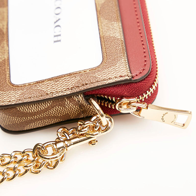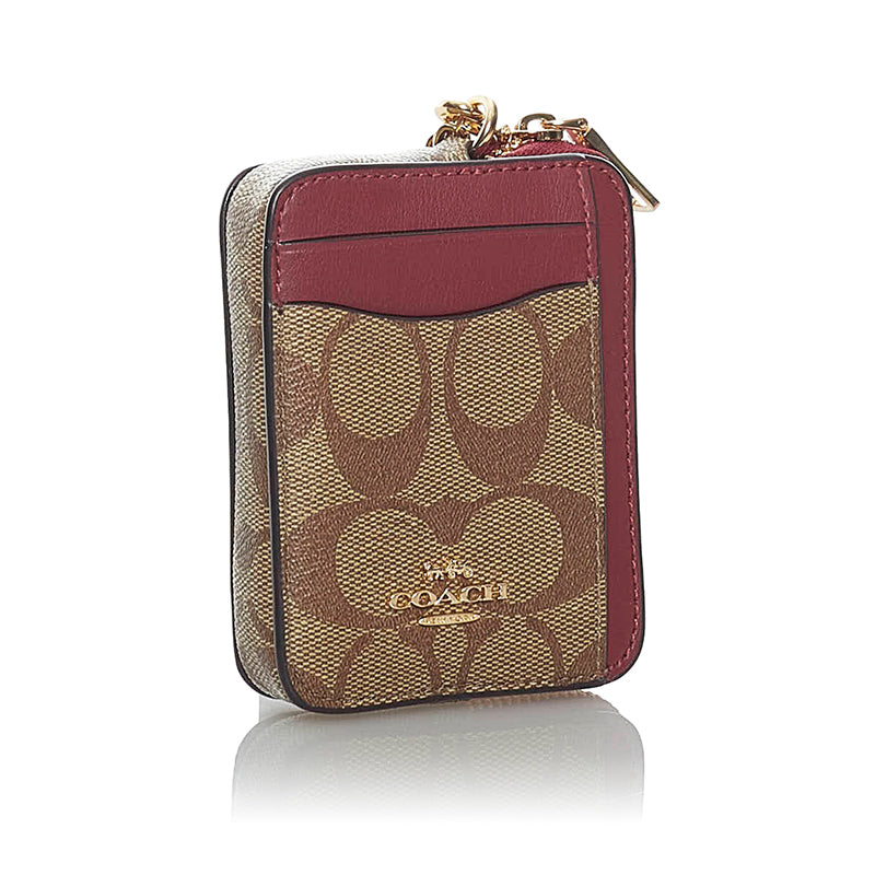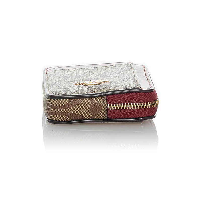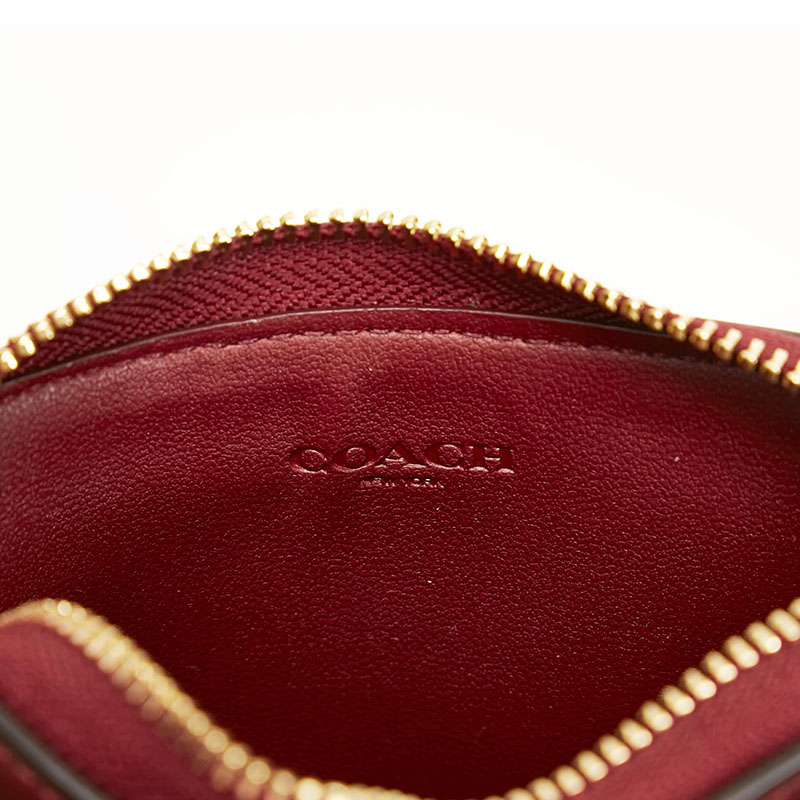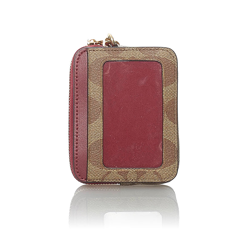 コーチ シグネチャー コインケース ミニウォレット ワインレッド PVC レザー ビニール レディース COACH 【中古】