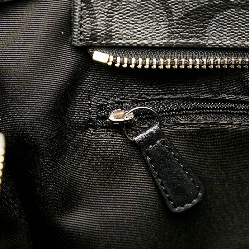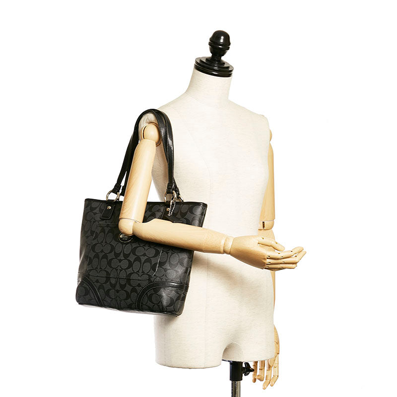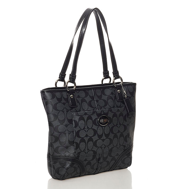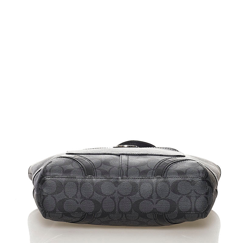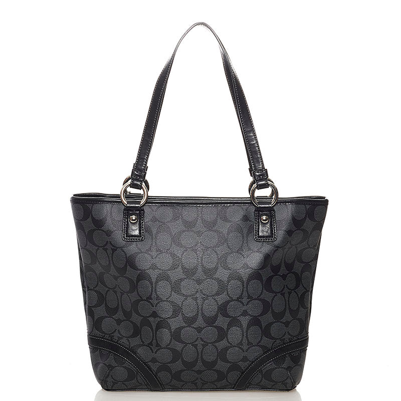 コーチ シグネチャー トートバッグ 不鮮明 グレー ブラック PVC レザー レディース COACH 【中古】