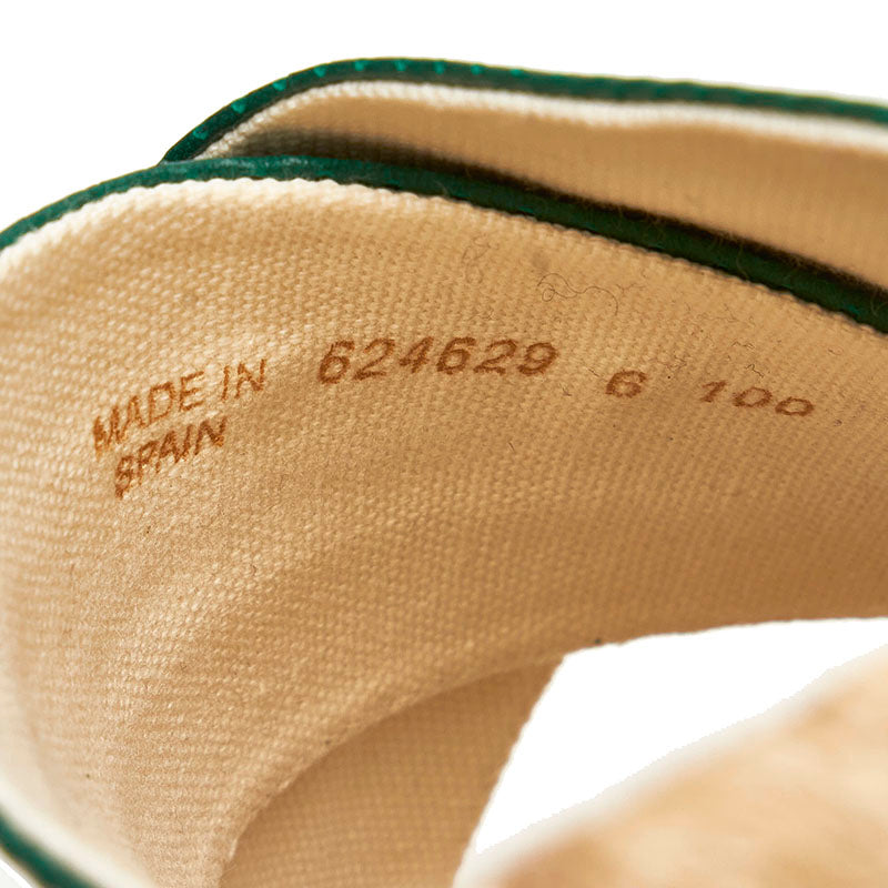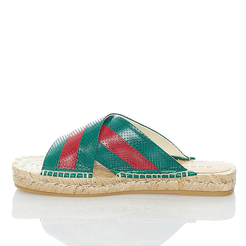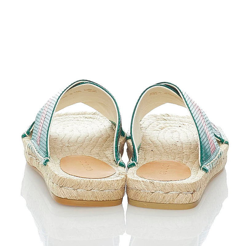 グッチ スライド サンダル 624629 グリーン レッド ベージュ レザー 麻・リネン ラバー メンズ GUCCI 【中古】