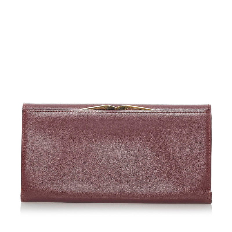 カルティエ マスト 長財布 ボルドー レザー レディース CARTIER 【中古】