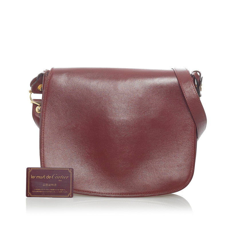 カルティエ マスト ショルダーバッグ ボルドー レザー レディース CARTIER 【中古】