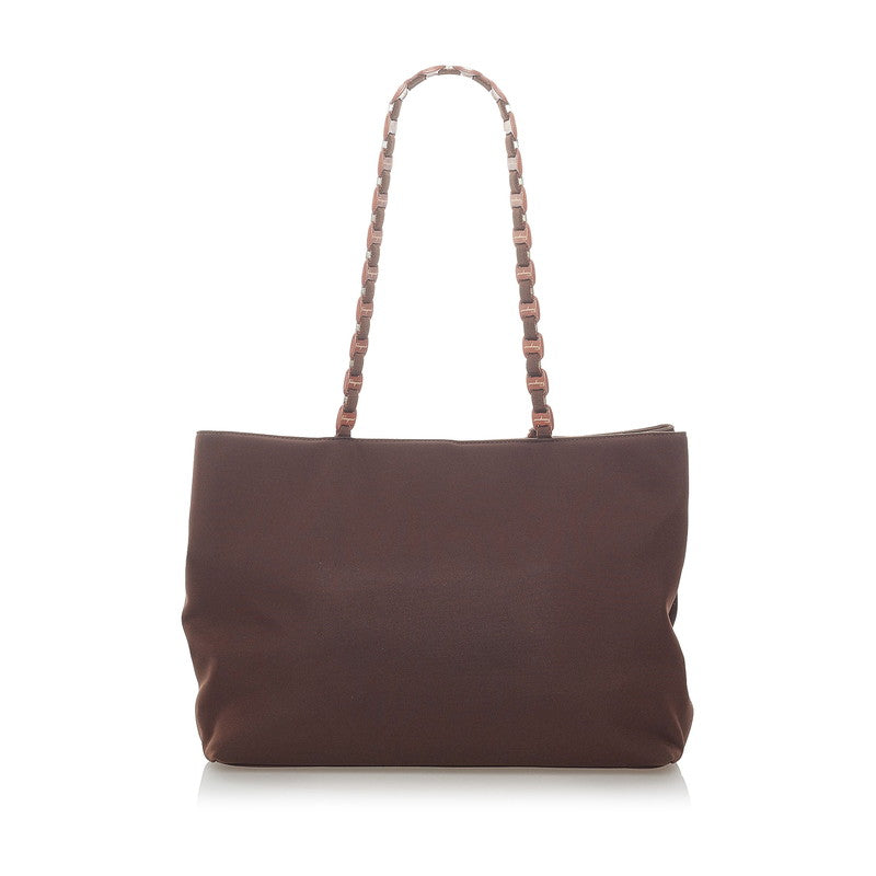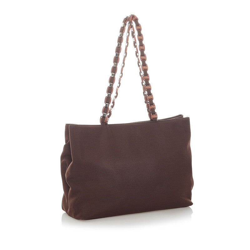 サルヴァトーレフェラガモ チェーン トートバッグ AU-21 8230 ブラウン キャンバス レディース Salvatore Ferragamo 【中古】