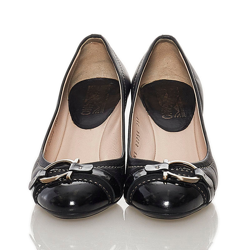 サルヴァトーレフェラガモ ガンチーニ パンプス ブラック レザー レディース Salvatore Ferragamo 【中古】
