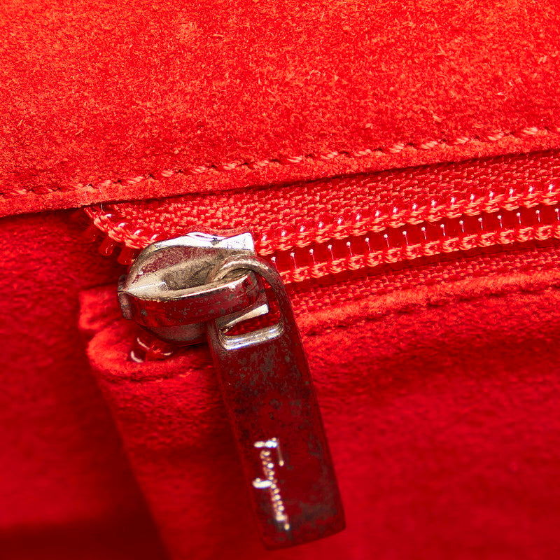 サルヴァトーレフェラガモ ガンチーニ型押し ハンドバッグ ショルダーバッグ レッド レザー レディース Salvatore Ferragamo 【中古】