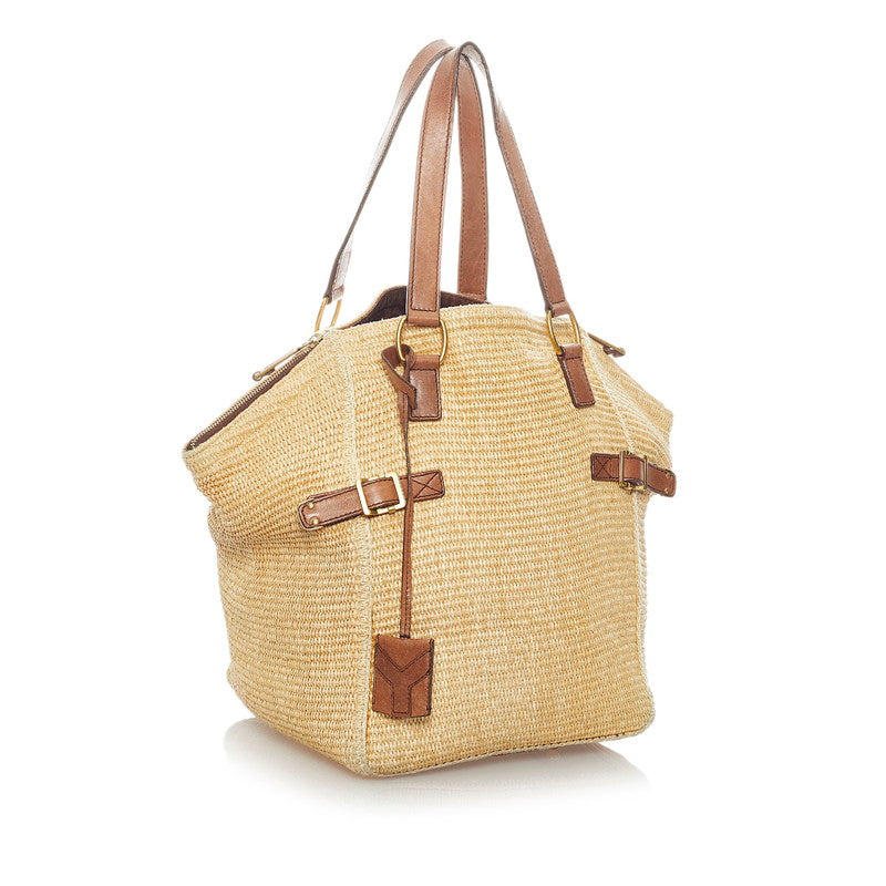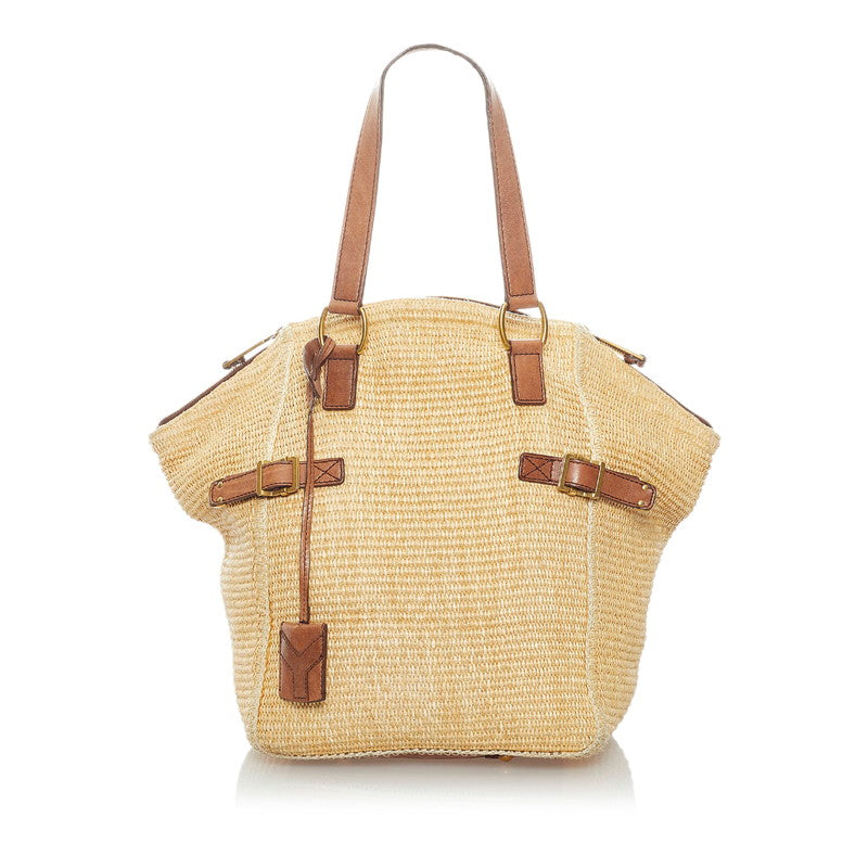 サンローラン かごバッグ トートバッグ ベージュ ラフィア レザー レディース SAINT LAURENT 【中古】