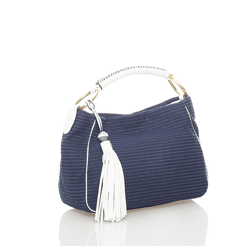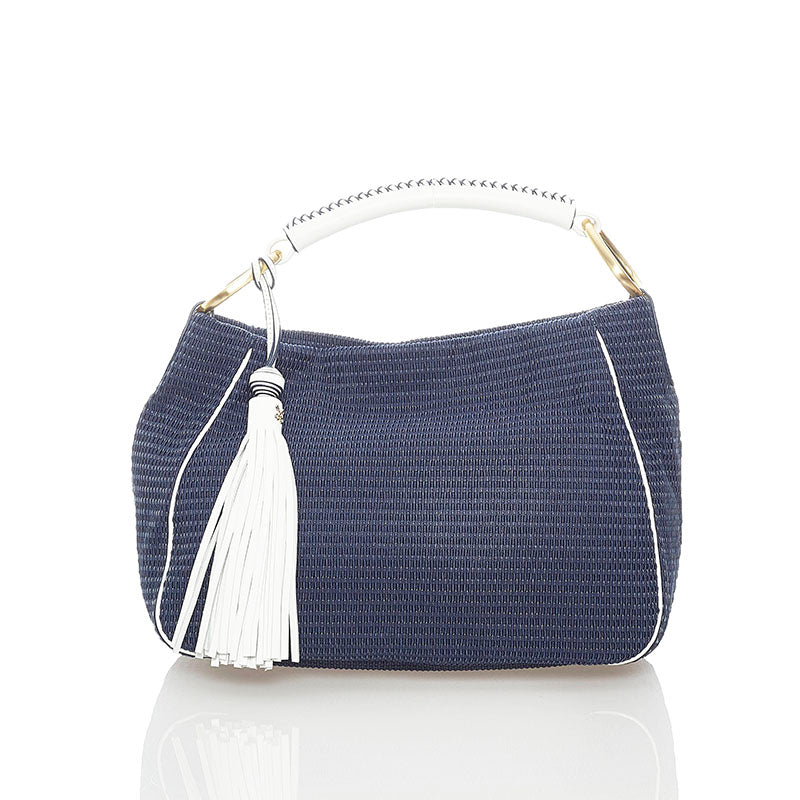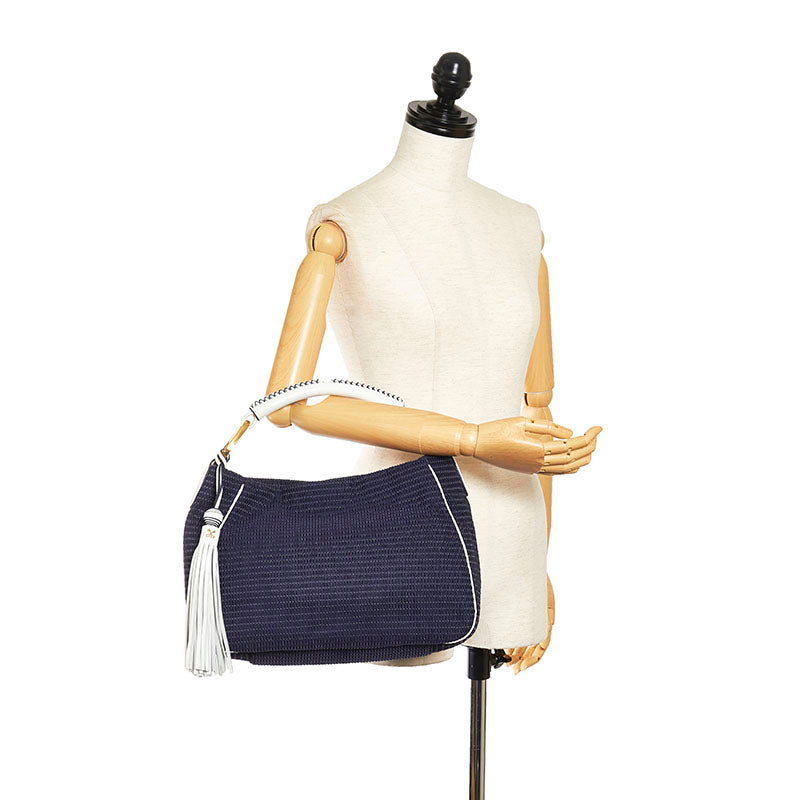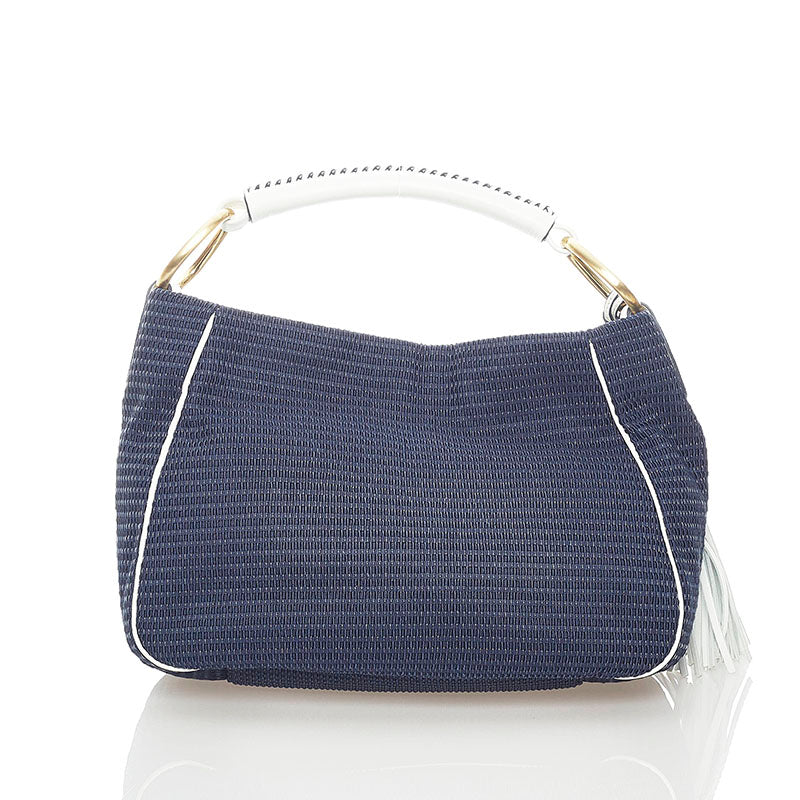 サザビー ハンドバッグ ネイビー ホワイト ナイロン レザー レディース SAZABY 【中古】