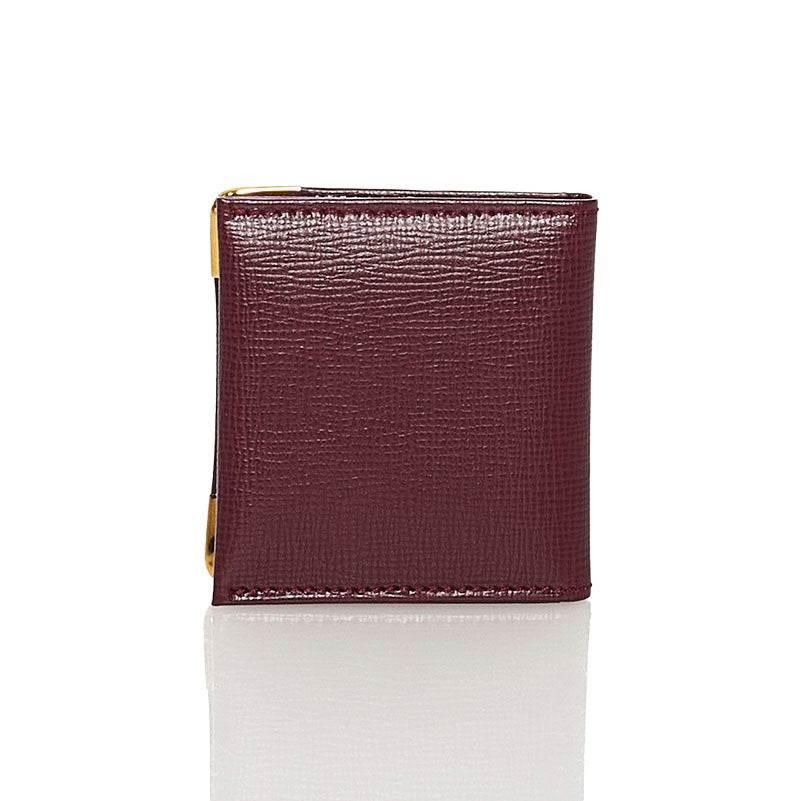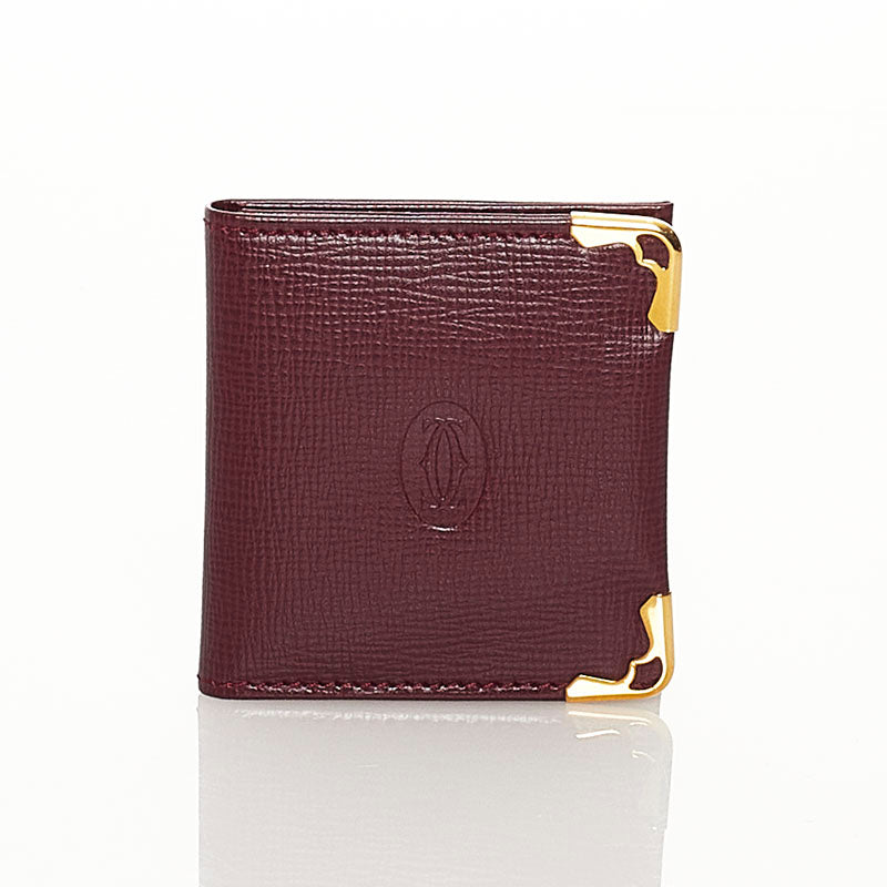 カルティエ 二つ折り 写真ケース ワインレッド レザー レディース CARTIER 【中古】