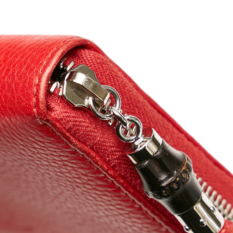 グッチ タッセル バンブー ラウンドファスナー 長財布 307984 レッド レザー レディース GUCCI 【中古】